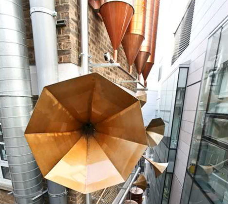 "Дети в лондонской больнице Great Ormond Street могут войти в секретный дворик, встать рядом с извилистой системой медных труб и рогов и послушать звук мягких колыбельных песен. Эта музыкальная инсталляция была создана Studio Weave для заполнения узкого, в противном случае неиспользуемого пространства, созданного конструкцией соседнего здания."