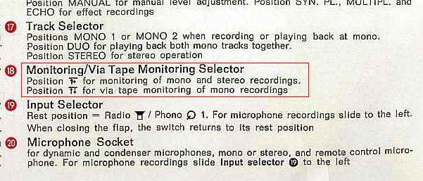 Вроде сквозной канал и пара встроенных динамиков. Модель начала 70-х - по-арийски выдержан и вертикально-монументален. :) Возможность микса при записи+ эхо-эффект.