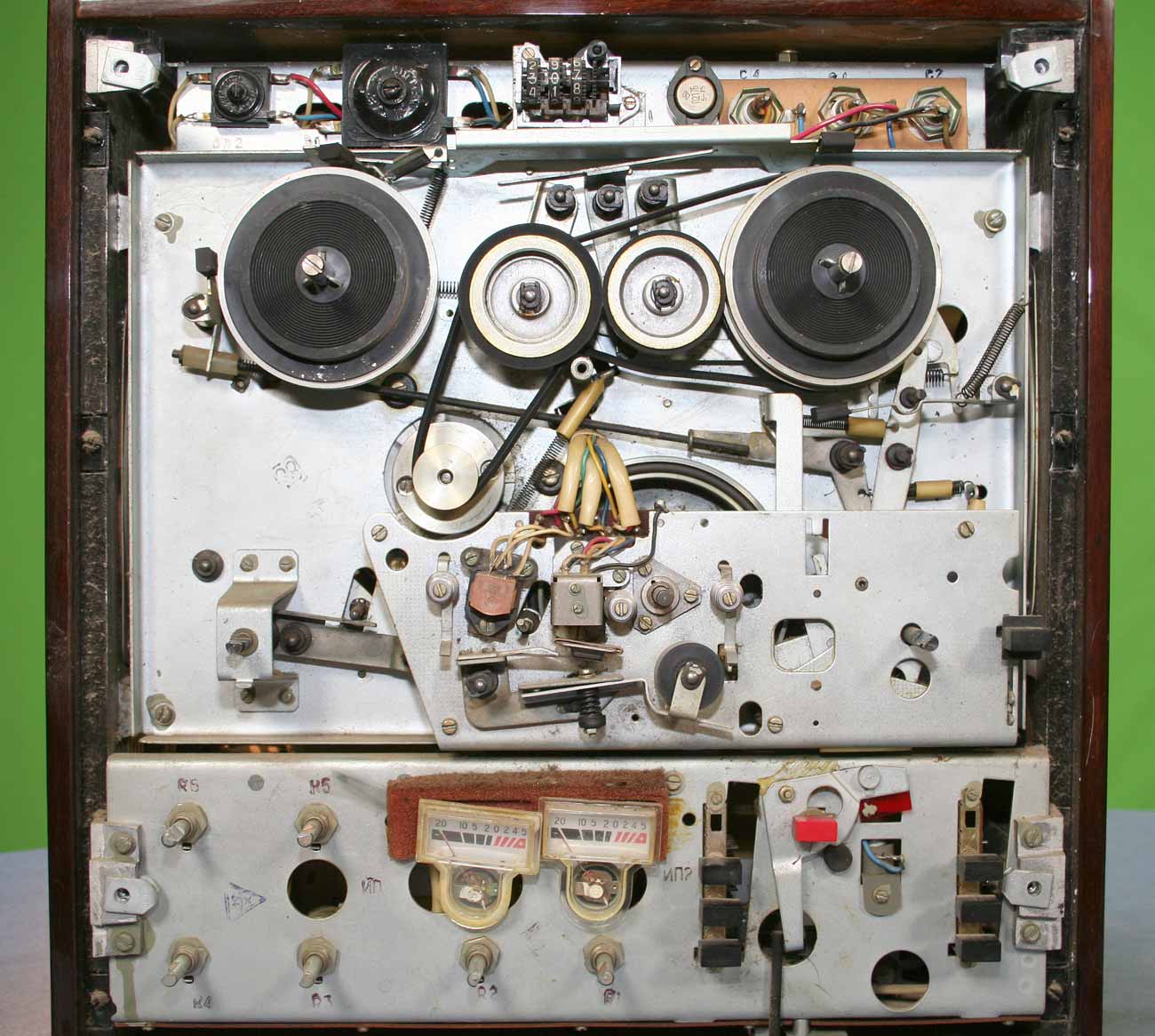 Самое удивительное, что аппарат работает. Я лишь отмыл его от 30-тилетней грязи, вычистил, пролил потенциометры и контакты включения/выключения.