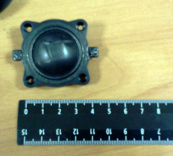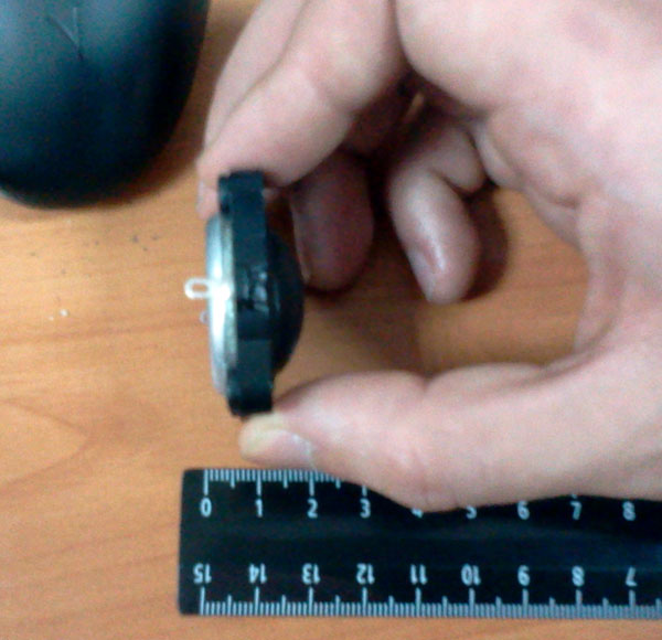 Оригинальная была с 25 мм шелковым куполом. Никаких маркировок на ней нет. Проблема в том, что она крепится к пластиковому рупору, который оставляет очень мало места в глубину. Вырез для купола в рупоре ~ 30-32 мм