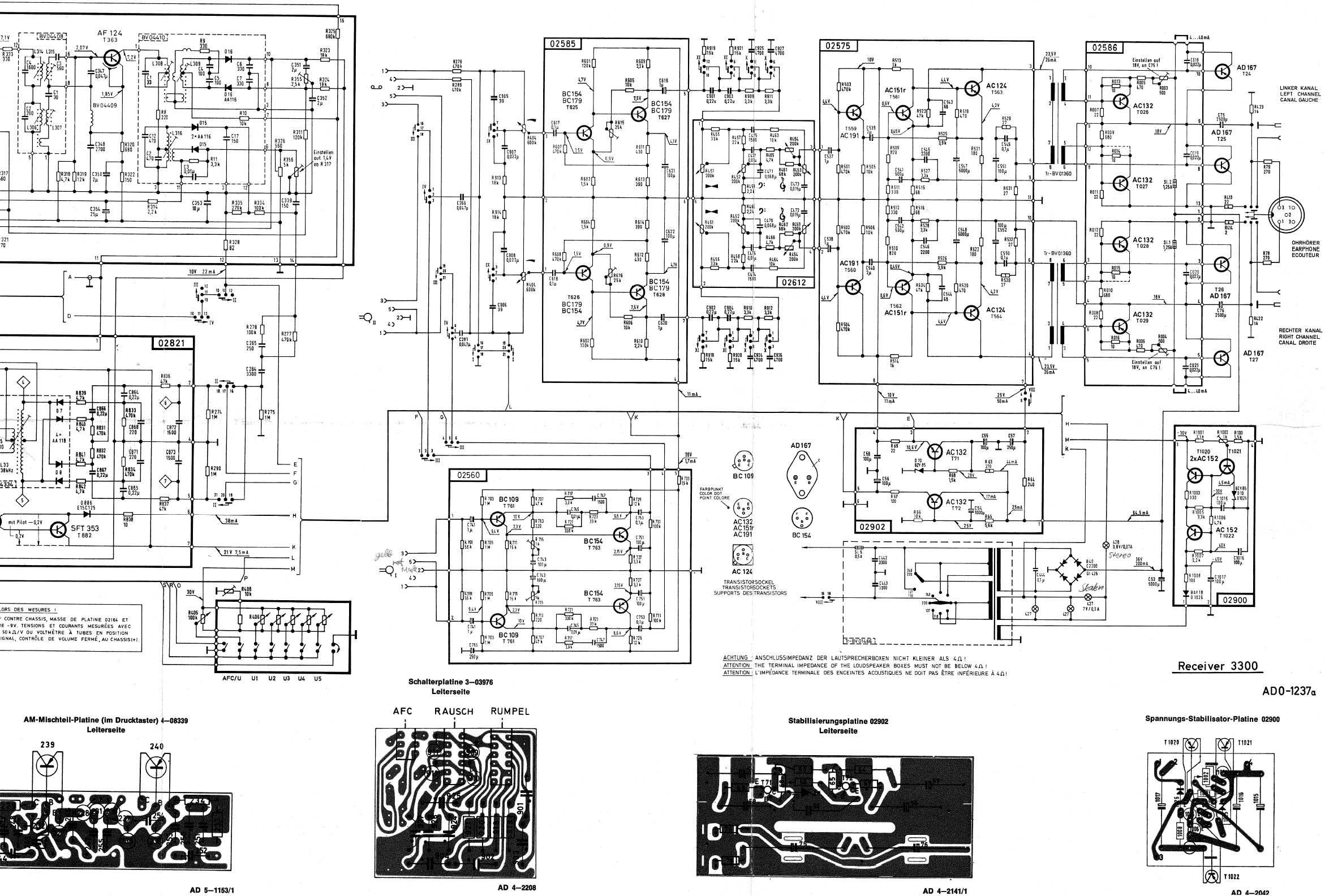 Здравствуйте! Может быть, кто имел дело, поможет. История такая. Почти месяц копаю ELAC 3300T. Проблема в том, что при прослушивании УКВ в режиме "стерео" качество звука ощутимо хуже, чем в "моно": бас немного "мыльный", общая громкость существенно ниже, меньше СЧ и особенно ВЧ. В "моно" звук прекрасный. Копал стереодекодер, измерял контрольные напряжения (правда, не все) и частоты, крутил подстроечники - вроде все ОК, электролиты в порядке. Есть нехороший симптом: лампочка "стерео" горит постоянно при включении кнопки "стерео", хотя, исходя из схемы, должна работать в ключевом режиме только при наличии пилот-тона. Помогите, пожалуйста!