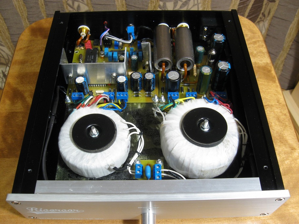 Хочу представить уважаемым форумчанам и гостям форума еще один свой проект. Небольшой, бюджетный, душевный ЦАПик на PCM56P-K, созданный совместно с моим хорошим другом Сергеем, талантливым инженером (КБ АО НПП "Радиосвязь"), огромнейшее спасибо ему за участие в проекте и большую проделанную работу! :peace:  Идея создания зародилась давненько, сформировали и обдумали концепцию, Сергей придумал как все упростить и оптимизировать, так же он занимался разработкой печатных плат и разработал весьма уникальный преобразователь ток/напряжение (за основу взята идея С.Рубцова, но разработка собственная), довольно простой и очень музыкальный. Итак, обо всем по порядку. По входу работает старый винтажный приемник Yamaha YM3623B, входа два SPDIF и оптический. Микросхема выбрана мной чисто интуитивно, как оказалось она устанавливалась и в какие то топовые ЦАПы AudioNote. Достоинства ее заключаются в том, что в ней нет ничего лишнего, она простая, и очень музыкальная! Правда как минус понимает только 16 битный формат и имеет огромный джиттер, поэтому мы ее зареклочили. Реклок асинхронный, на базе эмиттерно-связанной логики Motorola MC10116 (по А.Маркитанову), от лампы в данном проекте отказались, во первых, чтобы особо не повторятся и не следовать тренду  :lol: , во вторых, в малогабаритном устройстве городить подобное было не особо уместно, в третьих мы все же считаем, что клок желательно должен быть виброразвязан от корпуса, дабы не генерировать (микрофонить) лишние паразитные модуляции и выдавать чистый синус! Триггер реклока был выбран вполне традиционный 74AC74. Далее сам ЦАП на PCM56P, работает в NOS режиме и никаких цифровых фильтров не имеет. Питание имеет раздельные трансформаторы, отдельно для цифровой и аналоговой части, стабилизаторы цифровой части изначально планировалось сделать на наших любимых КТ603А, но к огромному сожалению, после установки они весьма сильно грелись, что ставило под сомнение надежность такого решения. Поскольку плата была уже готова, начались поиски альтернативы, сложность заключалась не только в том, чтобы найти хорошо звучащие транзисторы, но чтобы они еще и подходили по цоколевке. Выбор пал на мощные полевые транзисторы IRFZ46, которые были в последствии посажены на радиатор, они не только не испортили картину, но и добавили в нее свой колорит :smile: Выходной буфер: Преобразователь ток/напряжение, как я уже писал выше, выполнен так же на полевом транзисторе КП302, по одному на канал, режим его задается "подземным" стабилизатором. Сначала был установлен винтажный стаб типа Д814, но к сожалению режим был не достаточно стабилен и плавал, поэтому пришлось воткнуть туда TL. Никаких дополнительных транзисторов нет, потому как ток потребления довольно маленький. Выходной каскад представляет из себя простой катодный повторитель на миниатюрном двойном триоде 6н16б, выходные конденсаторы (безальтернативные в бюджетном сегменте) К40У-9. Кстати установлены они на стоечках, поэтому любой желающий легко может их собственноручно выпаять и поставить любые другие конденсаторы тех же номиналов в соответствии со своим музыкальным вкусом. В целом ЦАП выполнен в лучших традициях ЦАПостроения, а именно: Максимальная простота, на сколько это возможно, простые односторонние печатные платы, без всяких масок, лаков и позолоты (исключительно нейтральные по звуку), залужены спе