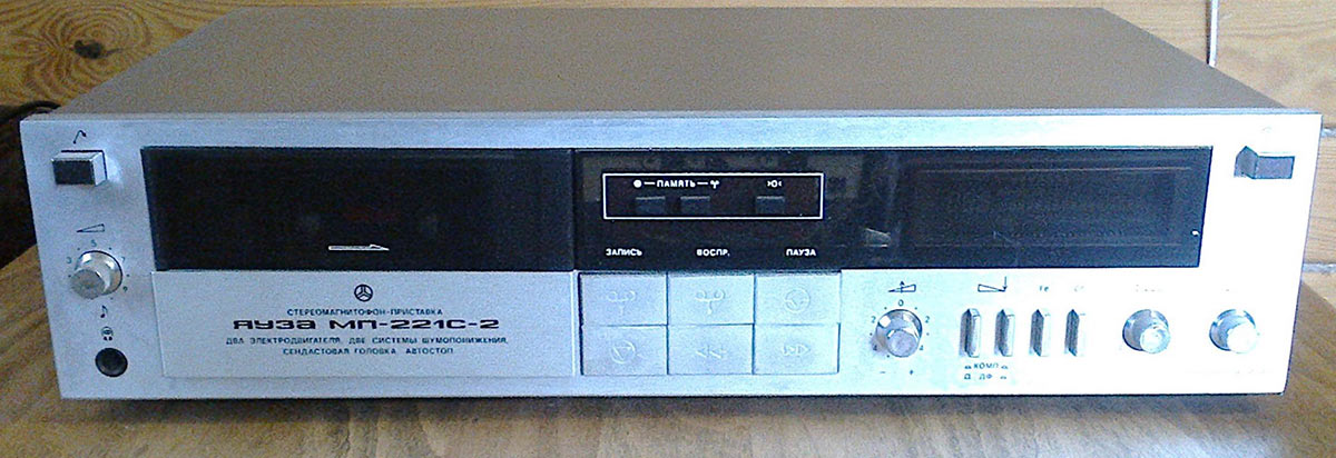 «Яуза МП-221С» выпускался с 1987 года – несмотря на скромные габариты и небольшой вес (всего 4,5 кг), кассетник получился исключительно удачным. Московский ЭМЗ N1 свое дело знал исключительно хорошо – аппарат работал с тремя типами лент, допускал регулировку подмагничивания, использовал электронно-логическую систему управления и аж два шумоподавителя (компандерный и динамический). ЛМП с двумя двигателями, сендастовая головка, АЧХ от 31,5 до 16 000 Гц, коэффициент детонации – 0,19%.
