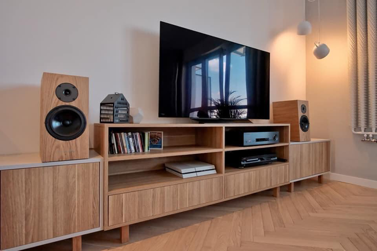 Полочные колонки необходимо располагать на антирезонансных стойках или использовать специализированные настенные кронштейны. Если их просто «положить на шкаф», ничего хорошего из звука не выйдет.