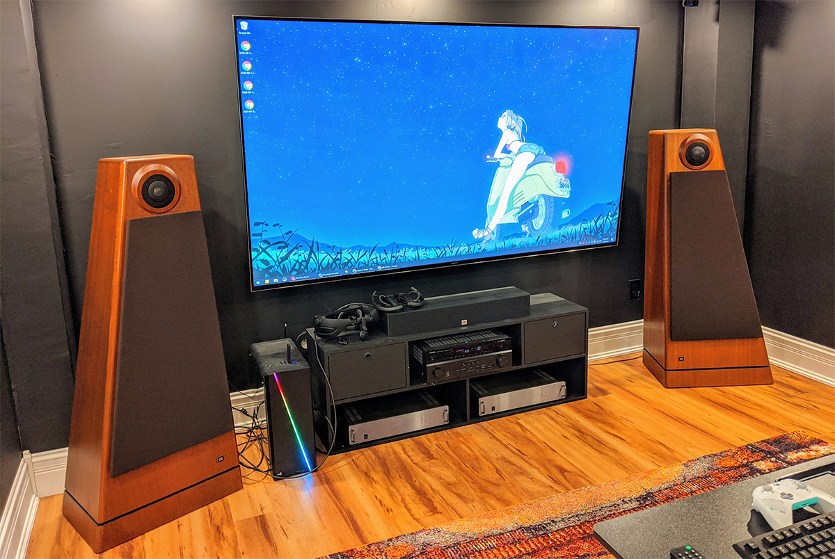 Еще один способ получить отражения и резонансы, испортив АЧХ. Даже если вы не услышите дребезг, саунд все равно деградирует из-за отражений от плоской стеклянной поверхности. То же касается и установки АС по бокам телевизора. В крайнем случае можно предусмотреть мягкое покрытие, которое разворачивается на время прослушивания и закрывает плоскую поверхность. Кстати, тоже самое касается и окон в помещении – на время прослушивания их лучше закрывать шторами.
