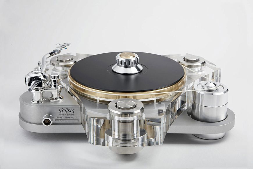 Бренд Kalista – это подразделение французской High End компании Metronome Technologie, детище Жана-Мари Клаузела. Аппарат, вышедший на двадцатилетний юбилей компании, выполнен из алюминия, метакрилата и стали, он покоится на трехопорной системе с магнитной жидкостью. Диск выполнен из меди и весит 16 кг (вес всей системы достигает 40 кг), привод комбинирует пассик и магнитную подвеску. Тонарм здесь собственной разработки, в его конструкции используются три противовеса. Эта модель не только шикарно выглядит, но и, судя по отзывам, демонстрирует абсолютно натуральное звучание.
