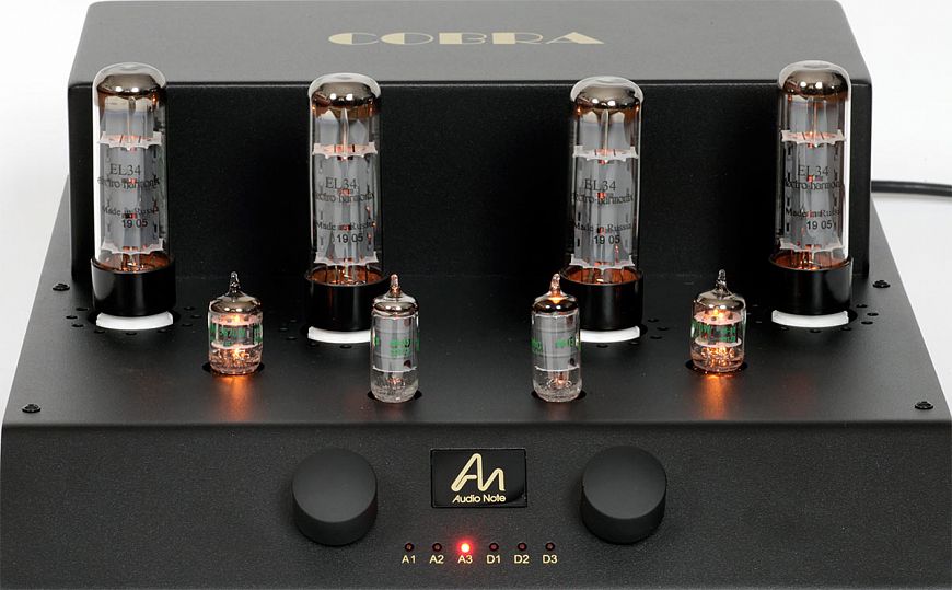 Предварительный каскад усиления каждого канала Audio Note Cobra реализован на двойном триоде 5670 и пентоде 6AU6, усилитель мощности построен на паре пентодов EL34 американской компании Electro-Harmonix, изготовленных на заводе Sovtek в Саратове. Усилитель работает по двухтактной схеме, имеет входное сопротивление 100 КОм и входную чувствительность в 300 мВ. На задней панели можно найти три линейных аналоговых входа (на разъемах RCA) и три цифровых порта.