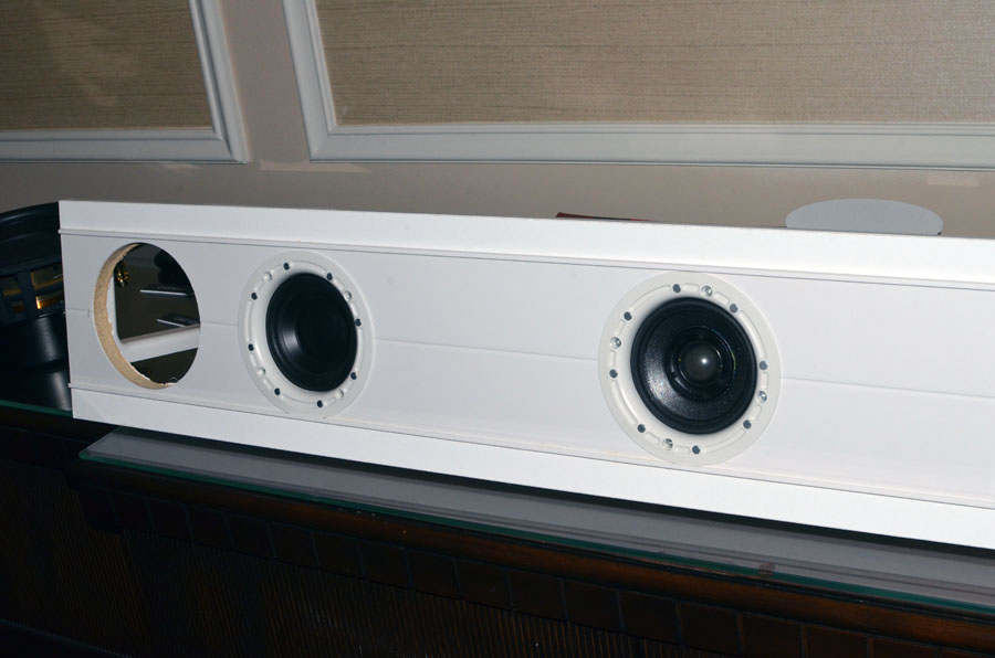 Весьма инновационное решение для пустотелых стен представила компания Morel. Это модульная система SoundWall LCR, которая предназначена для установки под практически любой ТВ прямо в стену – сначала наклеивается шаблон, по которому сверлятся отверстия, а в них уже вставляются два типа динамиков (в зависимости от необходимой конфигурации) – коаксиальный IC-4M I (ВЧ/СЧ) и IC-4M W (НЧ). Потом вся конструкция закрывается грилем и в результате выступающая из стены часть составляет всего пару миллиметров.
