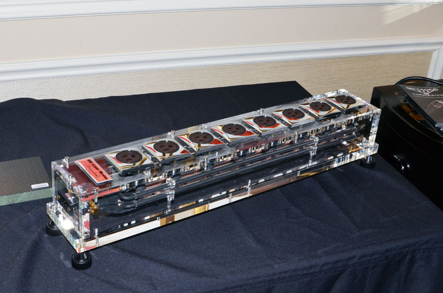 На выставке эта известная «кабельная» компания представила новейшую систему фильтрации электропитания – Niagara 7000. Стоит отметить, что в отличие от многих подобных устройств, “Ниагара” предназначена для подключения усилителей мощности и способна выдать до 90 А тока, если это понадобится. Всего у устройства 12 розеток, 4 из которых позволяют подключение мощных потребителей.