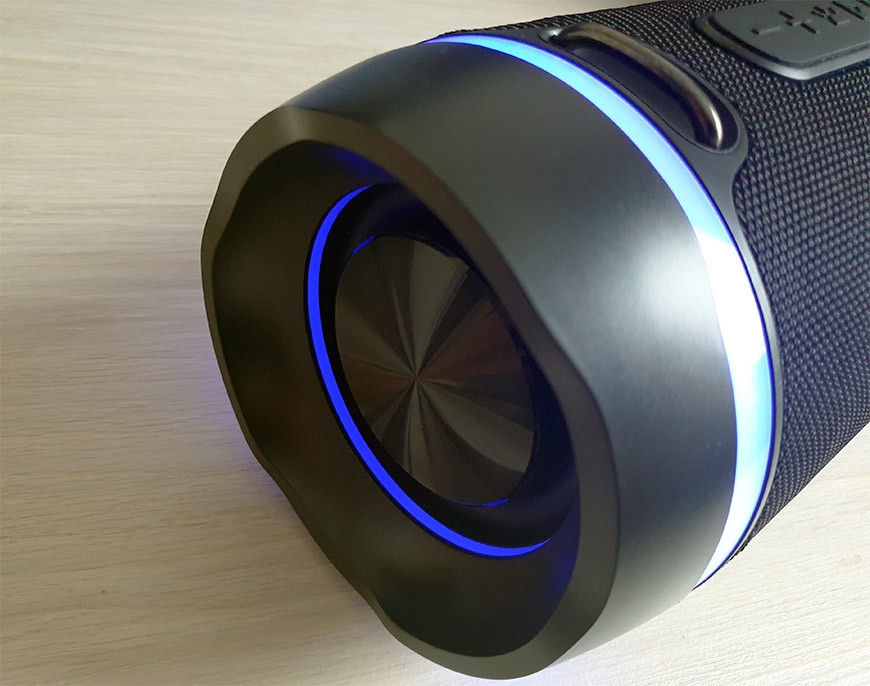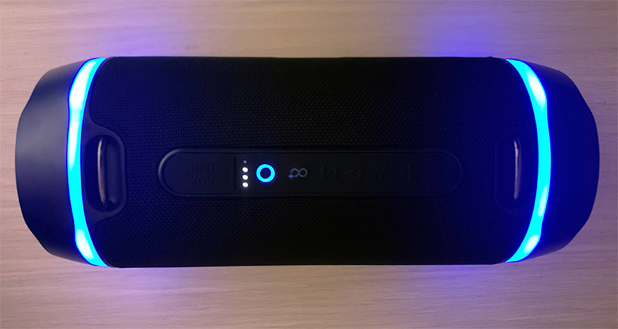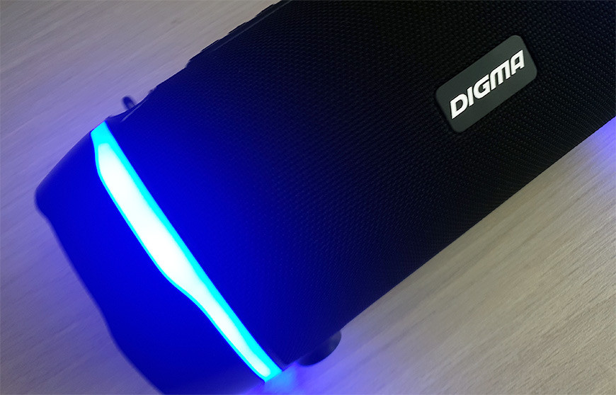 Однако все эти мелочи никак не влияют на главное, а именно качество звучания Digma S-39. Надо сказать, что с учетом немаленького размера колонки и заявленной мощности усилителей мы ожидали от неё уверенного и солидного выступления, и, в целом, ожидания оправдались. Мигающий синим цветом бочонок действительно выдает достаточно сбалансированный звук с разборчивым и динамичным мидбасом. Порадовало качественное воспроизведение вокала даже на весьма насыщенных тяжёлых жанрах, не говоря уже о популярной музыке. Хотя, конечно, полноценно прокачать большую комнату колонка не сможет, её способностей вполне достаточно для того, чтобы сопровождать застолье или небольшую вечеринку.
