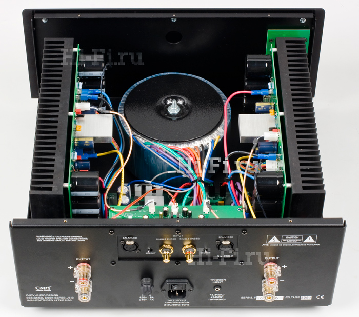 Законной гордостью и предметом вожделения поклонников фирменного звучания являются аппараты серии Classic — ламповые усилители и эксклюзивные CD/SACD-источники с ламповым выходом. Двухблочный SLP 05 является сейчас топовым предусилителем в этой линейке. Однако, стартовав с небюджетной ламповой техники и чистого стерео, Cary Audio Design постепенно добралась до транзисторных технологий, а потом в ее каталогах появились и многоканальные аппараты. За последнее десятилетие фирма получила множество престижных наград именно за свои инновационные разработки в области домашнего кино, в частности за DVD-плееры. Все лучшее из этой области было собрано в серии Cinema, и тестируемый мощник SA-200.2 — как раз новинка в этой славной плеяде. Благодаря официальным партнерским соглашениям Cary Audio с рядом крупнейших компаний, занимающихся автоматикой и системами управления «умным домом», удалось навести мост между двумя линейками путем их интеграции в системы автоматизированного управления домашней электроникой. Все усилители мощности серии Cinema имеют вход 12-вольтового триггера для дистанционного включения аппаратов, а все предусилители линейки Classic — сквозной канал Bypass, позволяющий встроить ультимативную стереосистему в многоканальную.