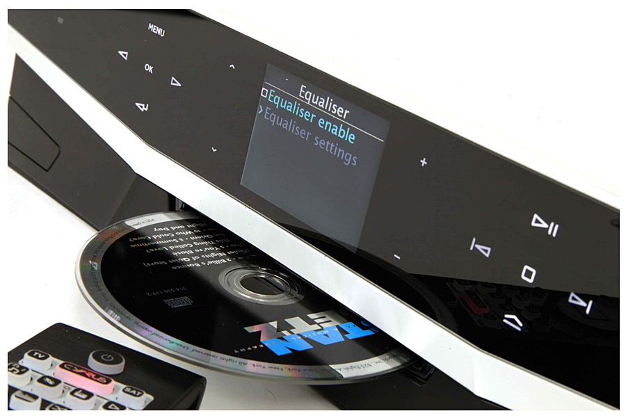 После включения в сеть и активации рабочего режима замаскированной под логотип сенсорной кнопкой лицо компонента приветственно загорается нарядной иллюминацией. Кажется, система тебе улыбается… Уменьшить освещенность можно отключением дисплея. К слову, само устройство способно оперировать свечением благодаря встроенному датчику приближения, а пульт ДУ, чутко реагирующий на перемещения, услужливо включает подсветку кнопок, оказавшись в руках — деталь небольшая, но приятная.