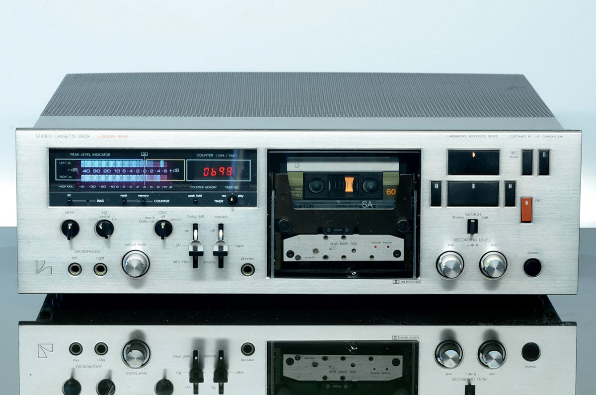 Разработка подразделения Laboratory Reference Series. Мощный корпус из алюминия, три головки, серьезный силовой трансформатор, двигатель с кварцевой системой контроля, регулировка азимута и система Realtime Processed DC (управляющая усилительным трактов как для записи, так и для воспроизведения) – модель была чудо как хороша. Соотношение «сигнал/шум» у Luxman 5K50 составляло 67 дБ (с Dolby), АЧХ лежала в пределах от 30 до 18 000 Гц. Весила модель 12,5 кг и продавалась за 280 000 йен (или $1 995).