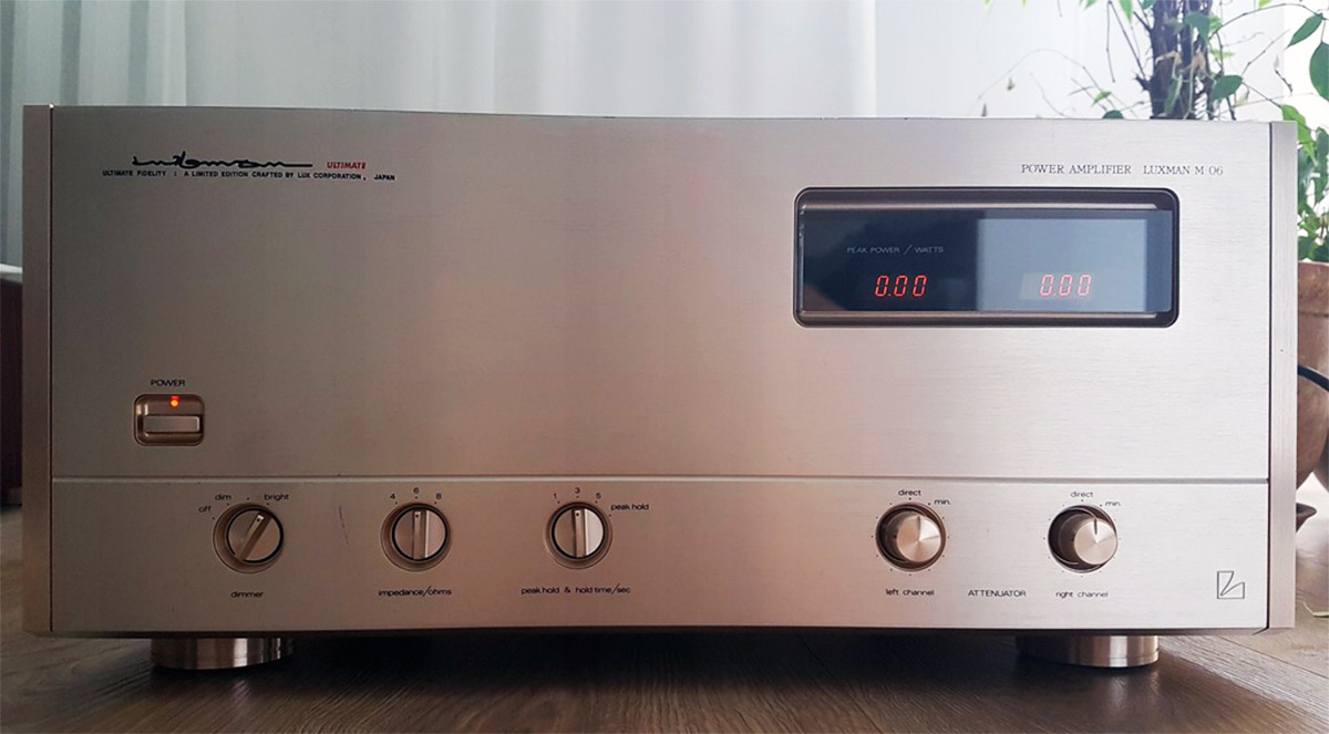 Luxman M-06 использовал конденсаторные блоки 2 х 18 000 µF от Hitachi, отдельный трансформатор для цепей управления, проводку из бескислородной меди и мог работать с нагрузкой до 2 Ом. Номинальная выходная мощность составляла 2 х 55 Вт на 8 Ом, искажения не превышали 0,008%, полоса пропускания лежала в пределах от 5 до 300 000 Гц, соотношение «сигнал/шум» было 110 дБ, коэффициент демпфирования составлял 100 единиц. Весил усилитель 22 кг и предлагался за 330 000 йен.