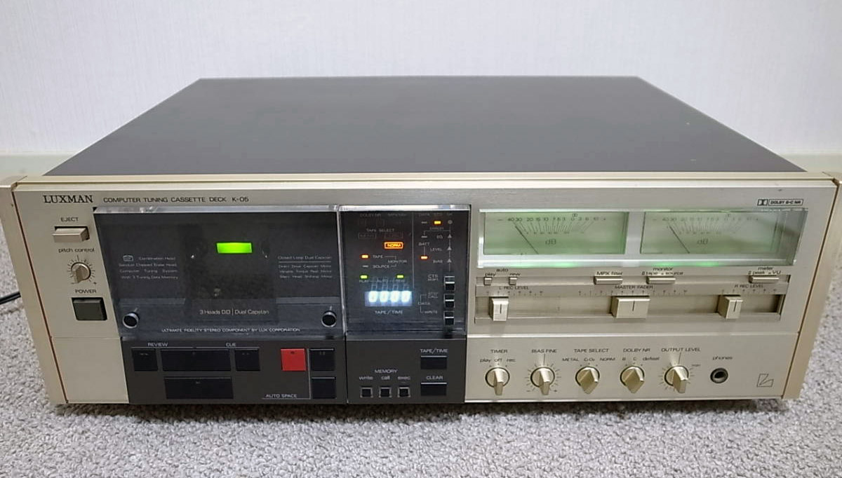 Новый лентопротяжный механизм GT Transport, использующий элементы из цинкового сплава, трехмоторная прямоприводная конструкция, воспроизводящая головка из прессованного феррита и система автокалибровки CTS делала Luxman K-05 весьма интересным выбором. Дека работала с показателем «wow & flutter» в 0,022% в АЧХ от 15 до 27 000 (!) Гц и гарантировала соотношение «сигнал/шум» в рекордные 73 дБ (с Dolby C). Весил аппарат 11,5 кг.
