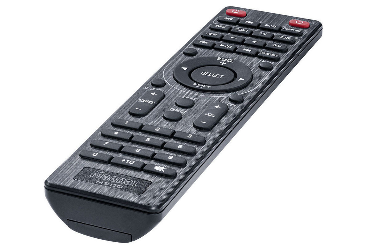 Линейных аналоговых входов в модели насчитывается целых пять штук. Есть и линейный аналоговый выход. Интересная функция Source Gain позволяет регулировать коэффициент усиления в пределах +/-6 дБ отдельно для каждого входа усилителя. В общем, функциональное оснащение Magnat MA 900 закрывает практически все потребности современного аудиофила, не хватает разве что встроенного стримера и порта USB-B для подключения в качестве цифрового транспорта компьютера или ноутбука, однако это уже придирки. В комплект также входит универсальный беспроводной пульт для управления полной системой, состоящей из компонентов Magnat.