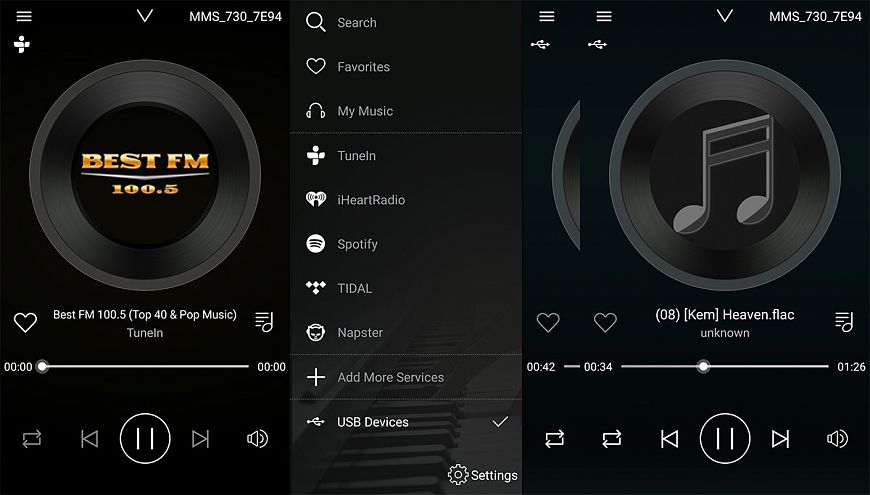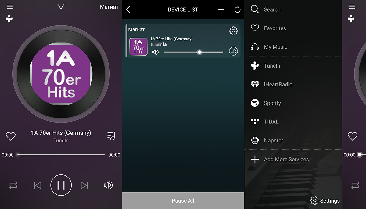 Итак, что же может этот недорогой стример? Хотим сразу предупредить хардкорных любителей цифрового звука, что никакой поддержки DSD или PCM сверхвысокого разрешения 32 бита / 384 кГц вы в нем не найдете, этот аппарат предназначен для тех, кто просто хочет слушать хорошую музыку с максимальным удобством и качеством. А для этого в нем есть все возможности, особенно нам понравилось управление радиоэфиром при помощи фирменного приложения. Музыкальные стриминговые сервисы работают, при наличии подписки, как им и полагается, однако для критической оценки качества звучания мы все же воспользовались файлами, расположенными на сервере в домашней компьютерной сети.