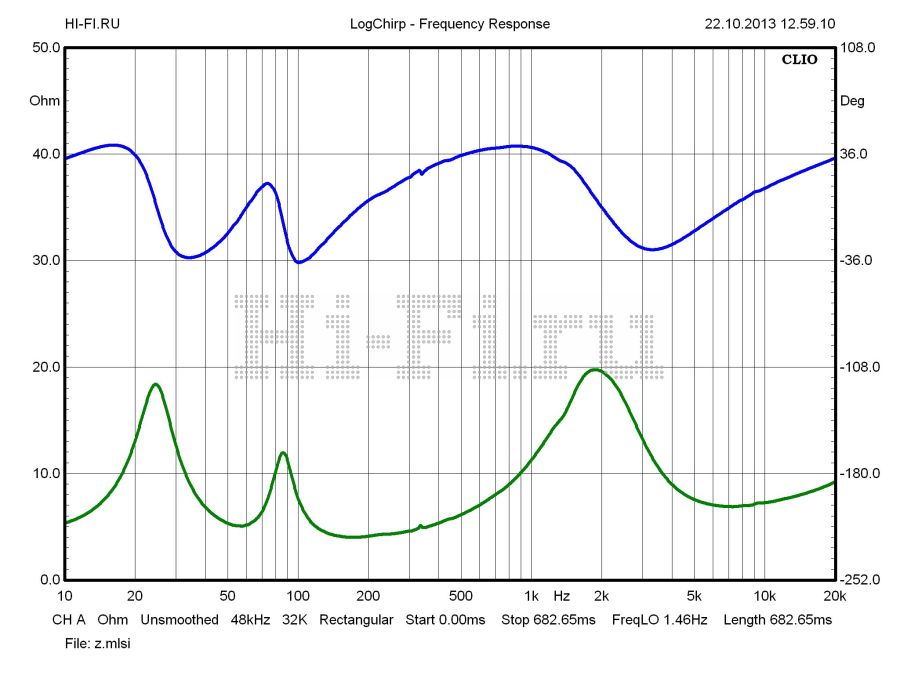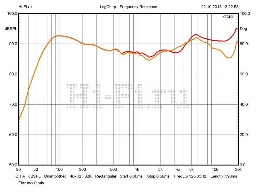 Акустические системы Focal Chorus 714 не являются сложной нагрузкой практически для любого усилителя. Среднее значение модуля импеданса составляет 8,6 Ом, минимальное не опускается ниже 4,0. Фаза электрического сигнала также стабильная (рис. 1). Настройка АС с широким плавным спадом амплитудно-частотной характеристики к середине рабочего диапазона воспроизводится и для внеосевой АЧХ, повторяя ход осевой практически до верхней октавы и обеспечивая отсутствие направленности излучения. Нижняя граничная частота по уровню –3 дБ составляет 58 Гц. Чувствительность — 89 dBSPL (1 м, 1 Вт). Акустика обладает не самым выдающимся, но разумным запасом по подводимой мощности, вплоть до уровней сигнала порядка 88 дБ, типичных для средней комнаты. Заметное увеличение КНИ в басу приходится на область активного спада чувствительности, хотя нижнюю границу рабочего диапазона частот с учетом КНИ стоит взять на 10 Гц повыше указанной. В оставшемся широком диапазоне среднее значение для 88 дБ равно 0,32%.