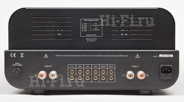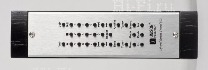 Знакомый тяжелый корпус из тонкого алюминиевого листа (основная масса явно приходится на содержимое, а не на внешность) все так же прострочен огромным количеством прорезей сверху и по бокам. Единственным его украшением служит сантиметровая алюминиевая плита с центральной акриловой полосой и желтой светодиодной индикацией. Для коммутации источников имеются четыре несимметричных входа на разъемах RCA, весьма коротких и поставленных впритык друг к другу. Как и в случае с Unison Research P40 и T.A.C. V-60, использование межблочных кабелей с разделкой массивными коннекторами здесь будет затруднено, что записываем в эргономические минусы. Впрочем, в значительной степени это компенсируется очень удобным универсальным пультом ДУ.