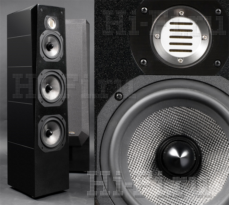 Тенденция к обновлению, к расширению воспроизводимого диапазона частот и повышению качества ВЧ (выражающаяся в том числе в замене купольных твитеров ленточными в топовых колонках Legacy) не миновала и более скромную линейку Classic. Тут мы видим ленточник из тонкой фольги на основании из каптоновой ленты, снабженный двойной магнитной системой. Легкие семи- и восьмидюймовые среднечастотники и басовики сделаны по одинаковой технологии — сэндвичи диффузоров из плетеных серебряных нитей и углеволокна на основе из полимерного материала Rohacell, мягкие резиновые подвесы, литые шасси. По заявлению производителя, фильтры собираются и настраиваются под конкретные экземпляры головок, давая разброс АЧХ между двумя колонками не более ±1 дБ. На задней панели располагаются две пары отличных пятипозиционных клемм под бивайринг, а также тумблеры, ступенчато регулирующие уровень НЧ и ВЧ, Trim 2 dB. В верхнем положении они должны обеспечивать ровную АЧХ, а в нижнем убирать 2 дБ на басу ниже 60 Гц и на высоких частотах выше 10 кГц. Чуть сужающиеся назад призмы корпусов со скошенными передней и боковыми гранями изготовлены из MDF и покрыты роскошным лаком «черный жемчуг» с серебристой искрой, который смотрится очень здорово. И вообще, конструкция впечатляет исключительным качеством и тщательностью сборки. Подиумов под кабинетами нет, но имеются четыре широкие круглые ножки, оканчивающиеся не острыми шипами, а конусами.