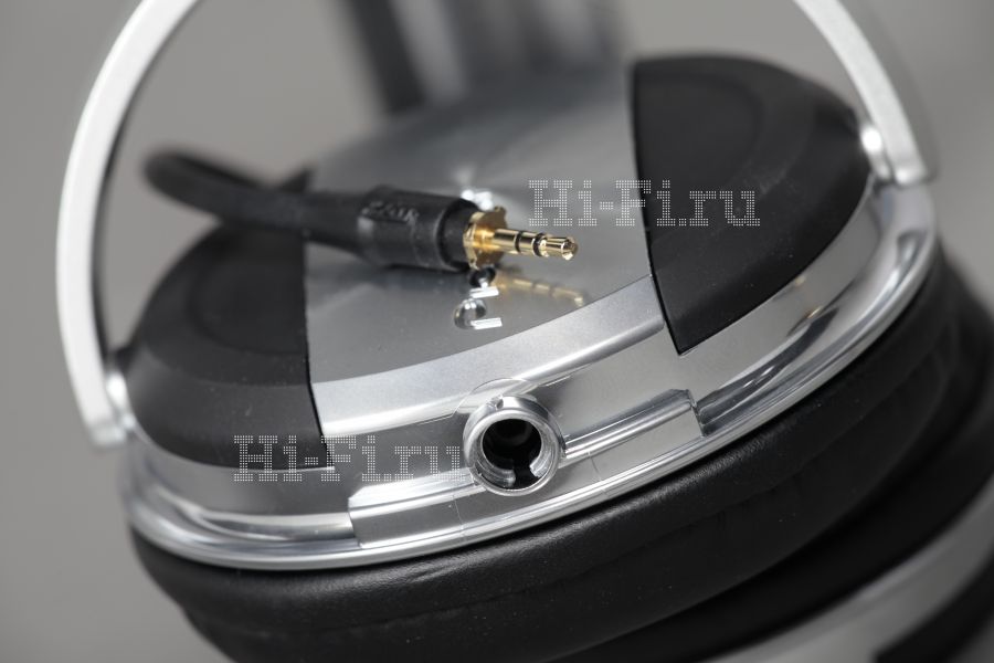 Кабель съемный, достаточно длинный, толстый, витой и, как следствие, тяжелый. Со стороны наушников он имеет 2,5-мм штекер со специальным фиксатором, исключающим случайное выпадение, с другой — 3,5-мм мини-джек; переходник на больший диаметр отсутствует. Рассчитан такой тип связи на то, чтобы двигаться, будучи привязанным к стационарному пульту, без риска запутаться или выдернуть провод. Для повседневного же использования с портативными устройствами он слабо подходит, но есть теоретическая возможность замены, благо разъемы стандартные. Зато в случае домашней эксплуатации подобных проблем нет, все удобно. Комплект поставки предельно аскетичен: кроме самих наушников и одного штатного кабеля, в коробке нет вообще ничего.