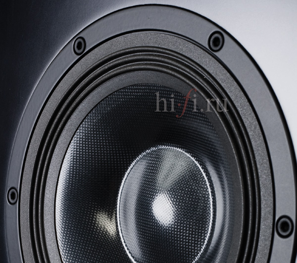Использование бериллия в качестве материала для излучающей поверхности ВЧ-головки позволяет добиться превосходных прочностных характеристик и равномерности работы на изгиб при очень малом весе. Запатентованная технология TAD за счет осаждения паров металла в вакууме делает возможным получение бериллиевых пленок с кристаллической структурой исключительной чистоты. За средние частоты отвечает драйвер с магниевым диффузором, у которого механические резонансы лежат далеко за пределами рабочего диапазона, что способствует чрезвычайной ровности АЧХ. Модули ВЧ и СЧ собраны в единый коаксиальный излучатель на резиновом подвесе, тончайший купол твитера защищен металлической сеткой. Вуферы тоже разрабатывались с учетом строгих требований по части легкости, жесткости и хорошего демпфирования. Для их диффузоров были выбраны сэндвичи из слоев арамида (кевлара) и углерода на бумажном подвесе, обеспечивающие линейное воспроизведение сигнала вплоть до экстремальных уровней громкости.