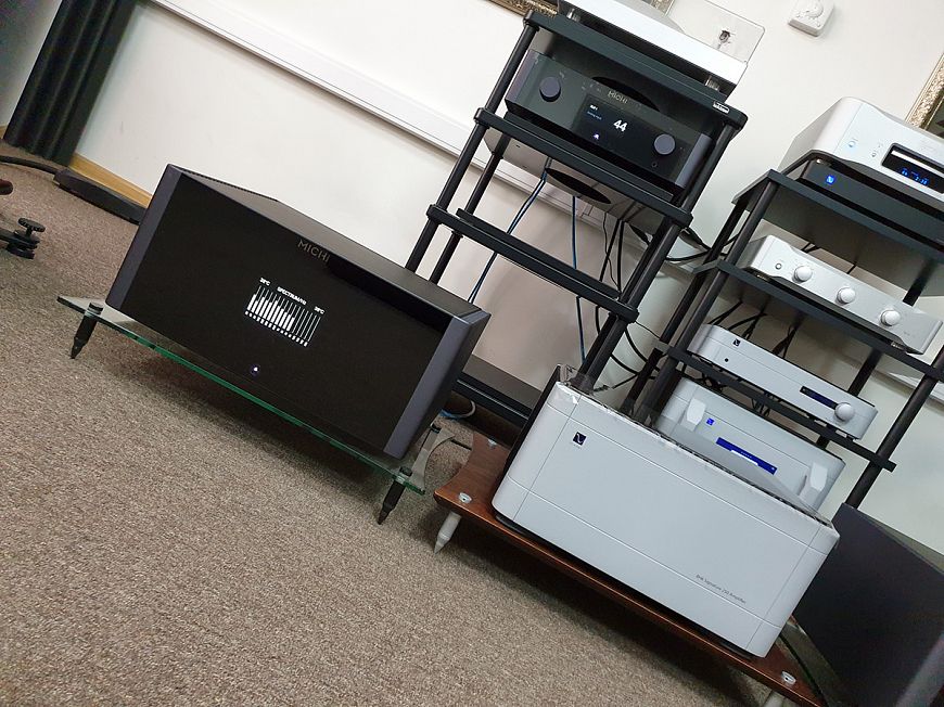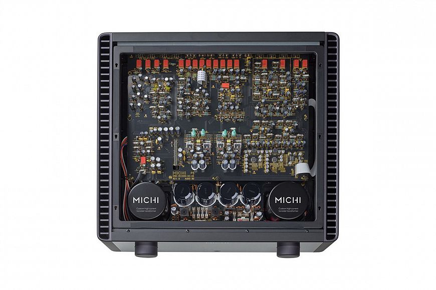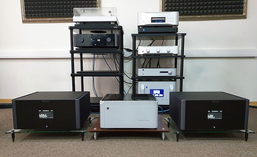 Мы уже неоднократно слышали усилители новой линейки Michi в деле, в частности, комплект из предусилителя P5 и стереофонического мощника S5 произвел на нас прошлой зимой максимально благоприятное впечатление. И в рамках предыдущего прослушивания мне казалось, что имеющихся в распоряжении усилителя 500 Ватт хватит для раскачивания абсолютно любых акустических систем. Однако если в линейке есть монофонические Michi M8, каждый из которых обладает мощностью в 1 080 Ватт, значит, это кому-то нужно? Поэтому мы решили проверить, как компания подошла к окончательному решению «проблемы нехватки мощности в стереофонических системах высокого класса».