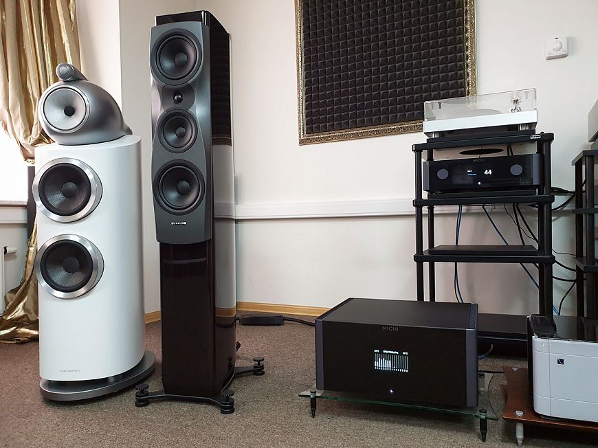 Прослушивание проходило в офисе российского дистрибьютора Rotel. Связка из предусилителя Rotel Michi P5 и усилителей мощности Rotel Michi M8 работала в паре с универсальным дисковым проигрывателем Esoteric K-03XD, акустическими системами Bowers & Wilkins 802 D3 и Dynaudio Confidence 30. Акустические и межблочные кабели – Transparent Ultra и Transparent Super.