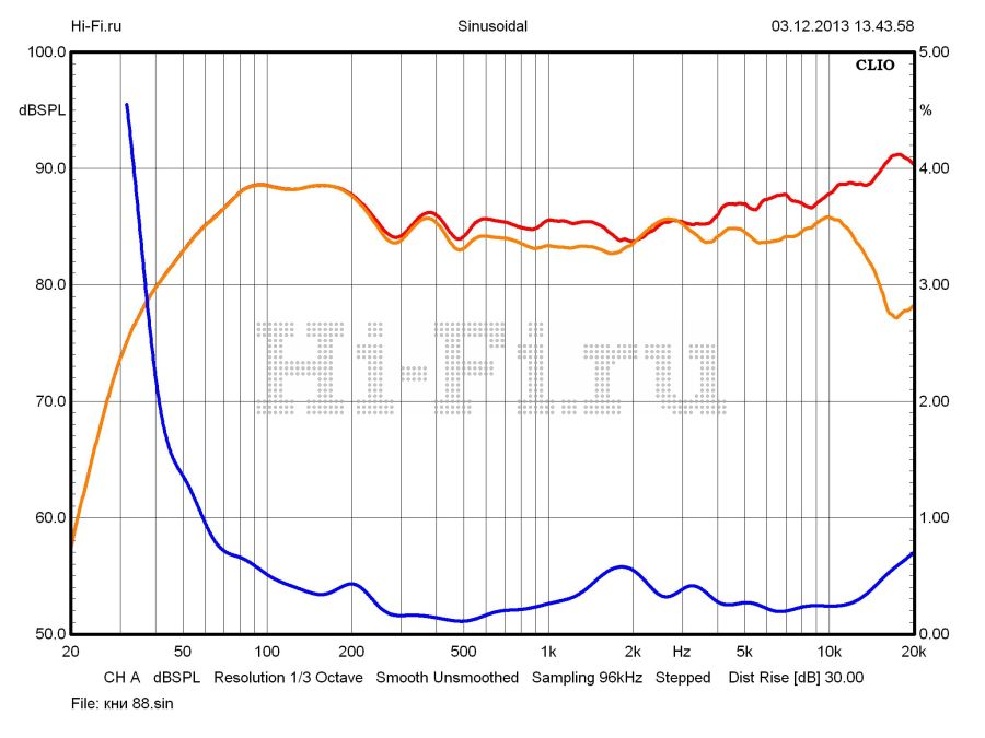 Средний КНИ в полосе 100 Гц — 10 кГц (88 дБ / 1 м), %