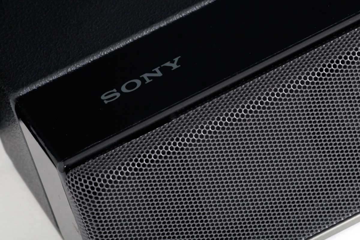 В основном горизонтальном блоке установлены три овальных широкополосных динамика, диффузоры которых имеют дополнительные ребра жесткости. Они направлены точно на слушателя и прикрыты несъемной металлической решеткой с перфорацией. В комплект Sony HT-G700 входит беспроводной сабвуфер, в котором и динамик, и отверстие фазоинвертора также направлены вперед. Производитель заявляет суммарную мощность всех встроенных усилителей на уровне 400 Ватт, то есть по 100 Ватт на каждый из четырех каналов. Вес центрального блока составляет 3,5 килограмма, сабвуфер весит 7,5 килограммов.