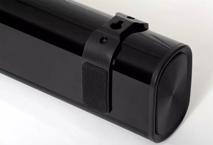 Саундбар можно расположить на столе или на полке перед телевизором, для чего он оборудован мягкими резиновыми ножками, либо повесить на стену под телевизором. Причём, для закрепления SVEN SB-2200D на стене не требуется никаких кронштейнов – достаточно ввернуть два шурупа, которые идут в комплекте вместе с дюбелями.