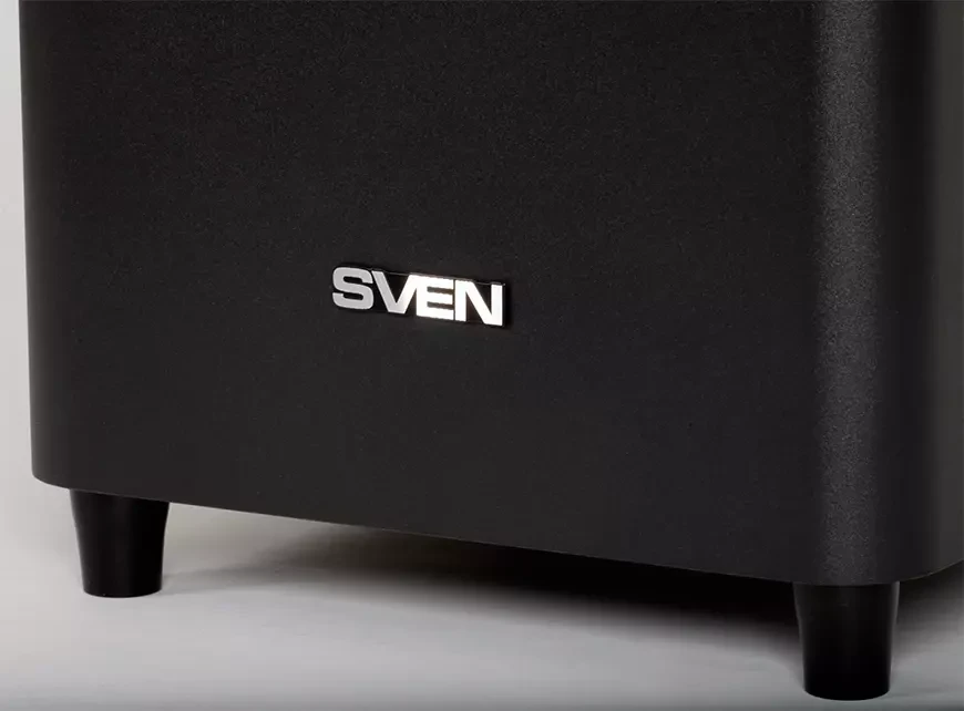 Как правило, сам саундбар ставится на полку или вешается на стену рядом с телевизором, а сабвуфер располагается в любом удобном месте неподалёку. А если ещё и сабвуфер с саундбаром общаются по беспроводному каналу, как в модели SVEN SB-2200D, то количество необходимых проводов и вовсе сводится к минимуму – силовые кабели от саундбара и сабвуфера, да кабель HDMI от телевизора к саундбару. При этом, сабвуфер может быть установлен практически в любом месте, где есть розетка питания – лишь бы расстояние между ним и саундбаром не превысило 10 метров.