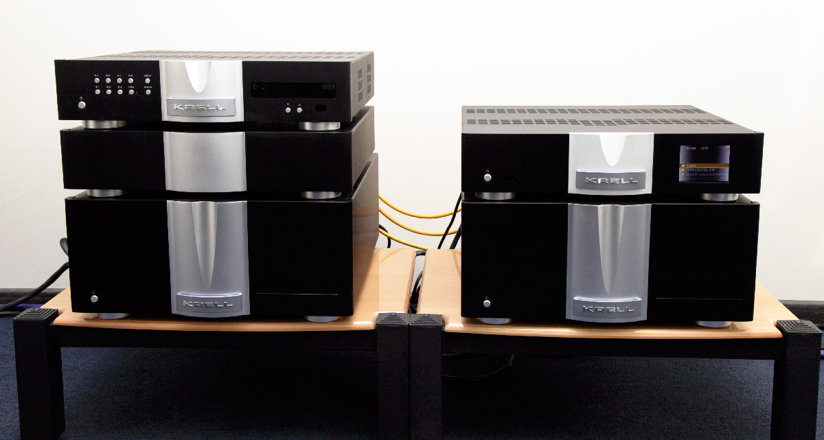 Сетевой плеер KRELL Connect Media Player, двухблочный предварительный усилитель KRELL Illusion Preamplifier, два моноблока KRELL Solo 375, межблочные балансные кабели van den Hul 3T Hill Hybrid и van den Hul 3T Rock Hybrid, акустический кабель van den Hul 3T The Cloud.