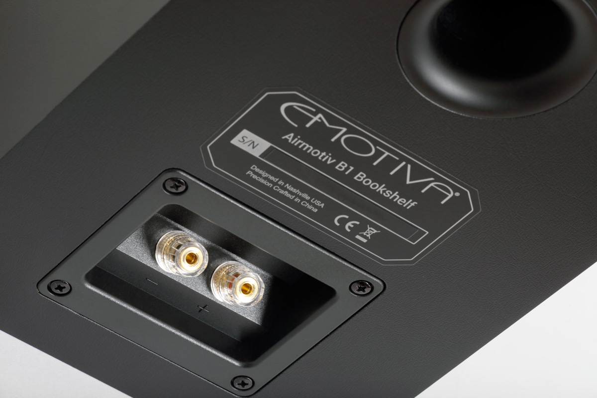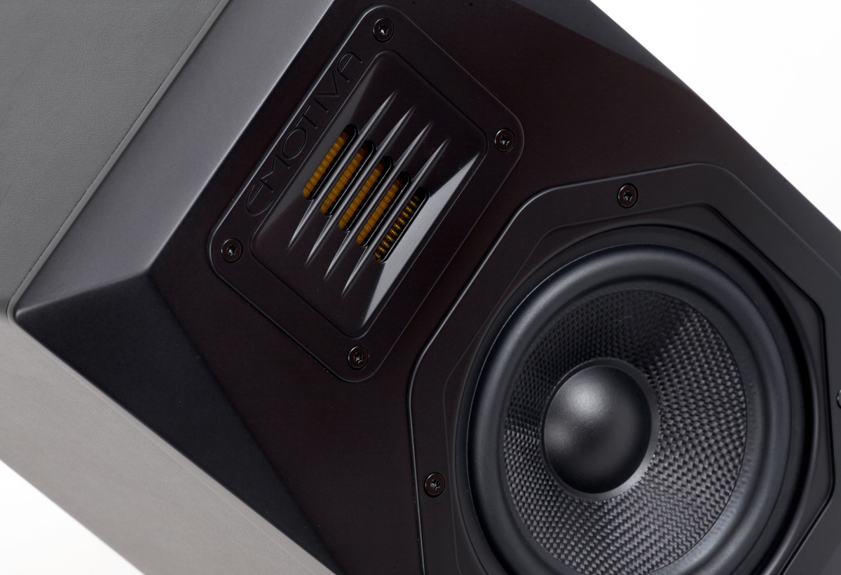 Для корпусов мониторов используются акустически инертные древесноволокнистые панели высокой плотности. Толщина панели, из которой изготавливается фасад колонки, достигает 25 мм, а боковые и задняя стенки выполнены из панелей толщиной 15 мм. Оригинальная многогранная форма фасада, унаследованная у студийной активной акустики Emotiva, не только придает внешности Airmotiv B1 экстравагантности, но и минимизирует дифракцию звуковых волн. Фасад покрыт несколькими слоями черного лака и специально обработан (сатинирован), чтобы на поверхности не оставались отпечатки пальцев и мелкие царапины.