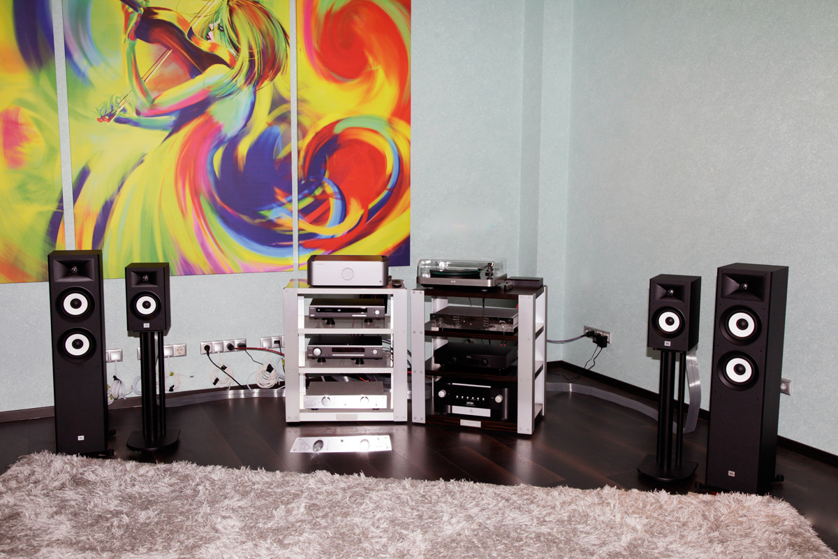 Для тестирования акустики серии JBL Stage мы подготовили две отдельных системы - для стерео и домашнего кинотеатра. В качестве фронтальной пары многоканального варианта были выбраны старшие напольные колонки JBL Stage A190, центральный канал обслуживала узкая A135C, боковой тыл был поручен младшим "напольникам" JBL Stage A170, а сзади трудились младшие "полочники" JBL Stage A120. Электроника кинотеатральной системы была составлена из Blu-ray-проигрывателя Arcam UDP411 и AV-ресивера Cambridge Audio CXR200. В музыкальной системе работала старшая полочная модель JBL Stage A130 и средние напольные колонки JBL Stage A180. Источником служил универсальный аудиопроигрыватель Arcam HDA CDS50, а усиление обеспечивал интегральный усилитель Arcam HDA SA10.