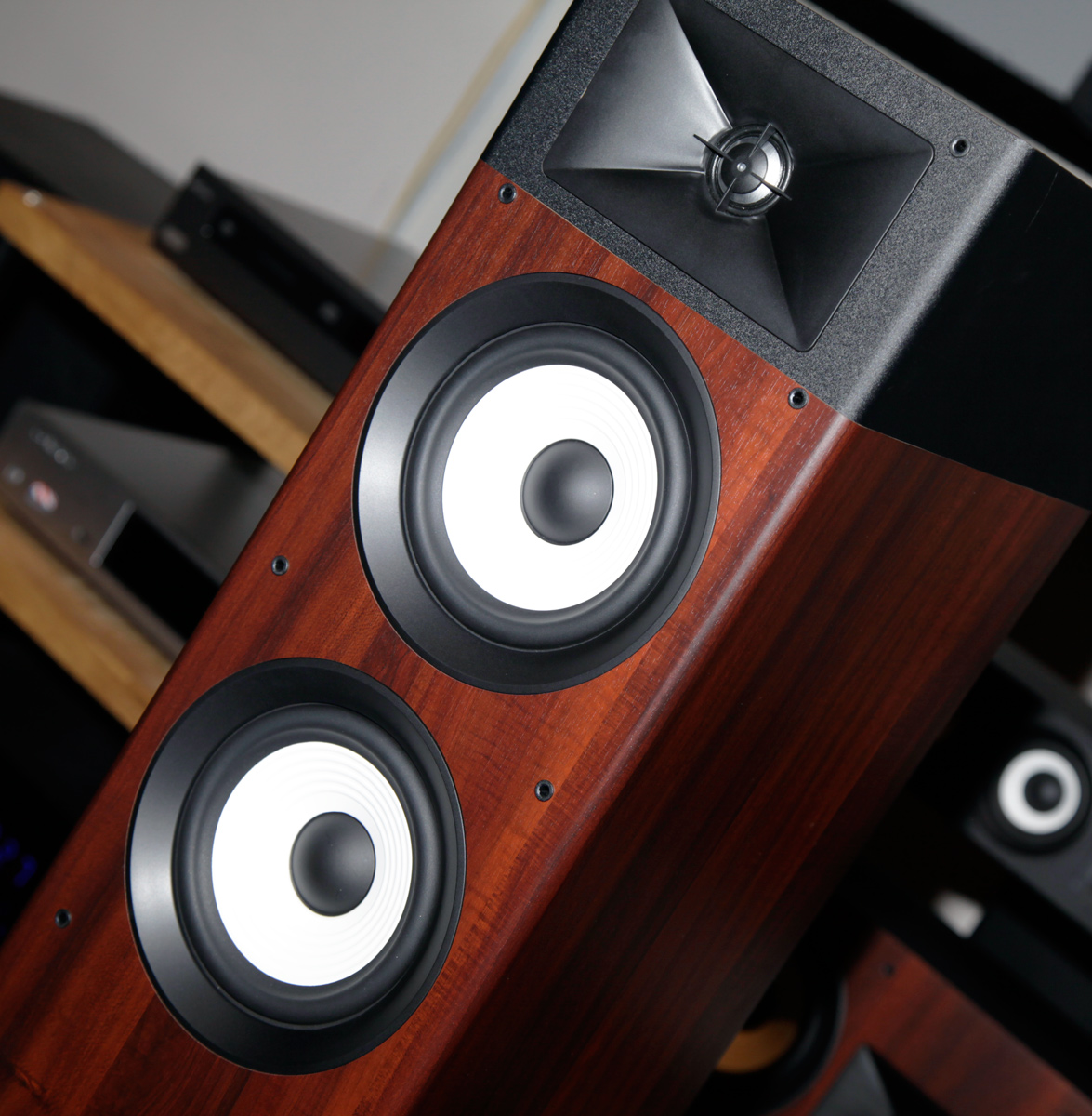 Новшеством в сравнении с предыдущей серией Studio 2 также стали ножки напольных моделей — теперь они выступают за габариты колонок, что увеличивает их устойчивость и разнообразит дизайн АС. Отделываются корпуса JBL Stage черной виниловой пленкой и, как вариант, пленкой, имитирующей шпон вишни. Акустические системы серии Stage полностью разработаны в США с применением самых передовых технологий JBL, а выпускаются в Китае, что позволяет соединить фирменное звучание JBL с весьма привлекательными ценами. И это не фигура речи, почерк бренда действительно узнается сразу после начала прослушивания.
