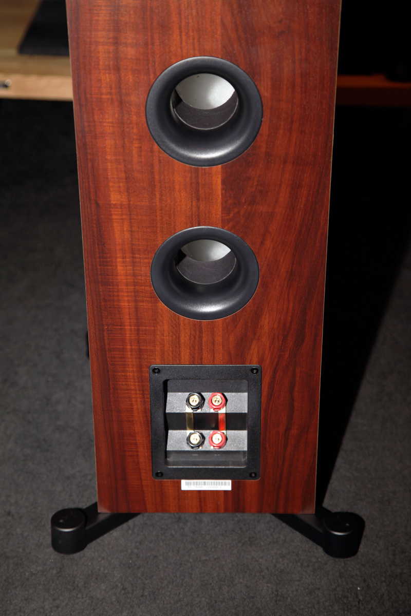 Отдельно стоит остановиться на колонках центрального канала. В отличие от серии JBL Studio 2, в Stage производитель предложил кроме классической модели JBL Stage A125C второй вариант такой АС — A135C. Она создана на базе шести драйверов малого диаметра с длинным ходом, работающих в корпусе с фазоинвертором. Такое решение позволило без компромиссов с низкочастотной отдачей скомпоновать колонку в очень узком корпусе, который гораздо проще сочетать с современными плоскопанельными телевизорами. Порт фазоинвертора АС центрального канала JBL Stage A135C выведен на боковую панель, а петли на задней стенке корпуса позволяют без дополнительных аксессуаров повесить колонку прямо на стену.