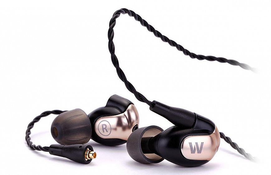 Одни из самых популярных топовых внутриканальных наушников в мире заключены в корпус из черного пластика со стильными медными декоративными элементами. Множество сменных насадок – 10 пар! – позволяют добиться оптимального комфорта и надежной фиксации. Прямой плетеный провод с собственным названием Epic имеет превосходную изоляцию, что практически полностью устраняет помехи, возникающие при соприкосновении кабеля с деталями одежды. Внутри корпуса установлены шесть арматурных излучателей, организованных в трехполосную конфигурацию. Чувствительность модели составляет 117 дБ, импеданс – 25 Ом. Что касается звука, то именно эти наушники долгое время считались образцом арматурных мониторов, на которые равнялись другие производители.