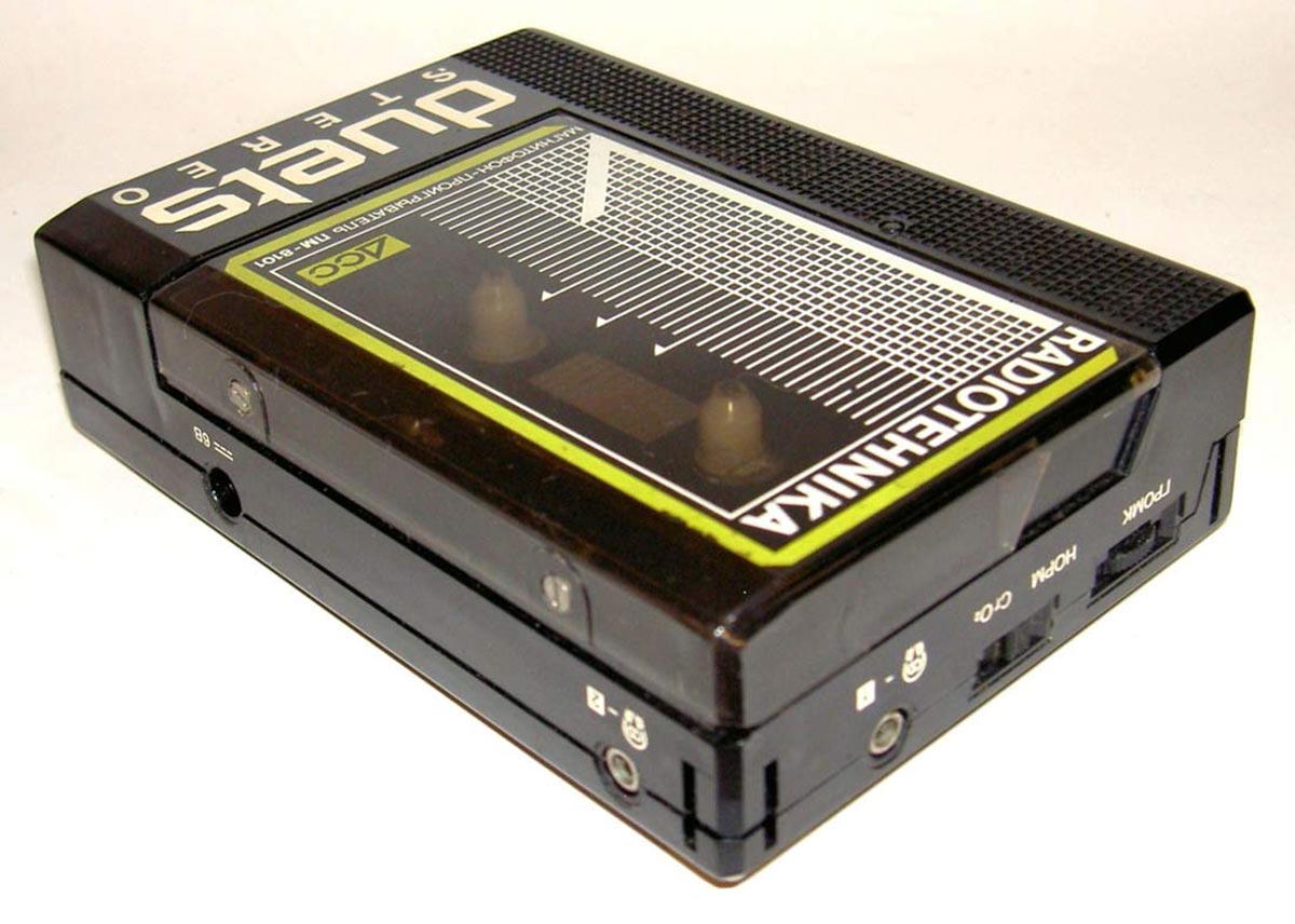 Не осталась наша промышленность в стороне и от бума портативного аудио. Данный плеер выпускал Рижский радиозавод имени Попова, в нем присутствовал переключатель типа ленты, перемотка кассеты допускалась в двух направлениях, работал автостоп. Батарейки двух типов помещались не только в сам проигрыватель, но и в специальный внешний контейнер, так что «запас хода» у модели был внушительный. Масса аппарата составляла 0,5 кг.