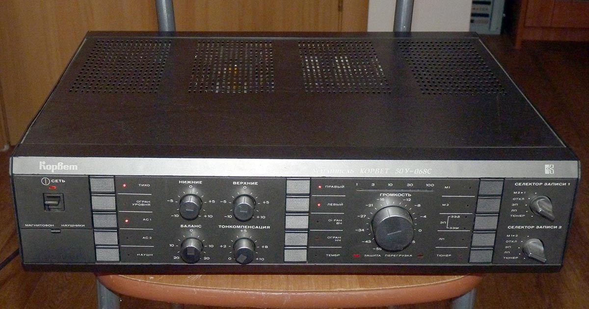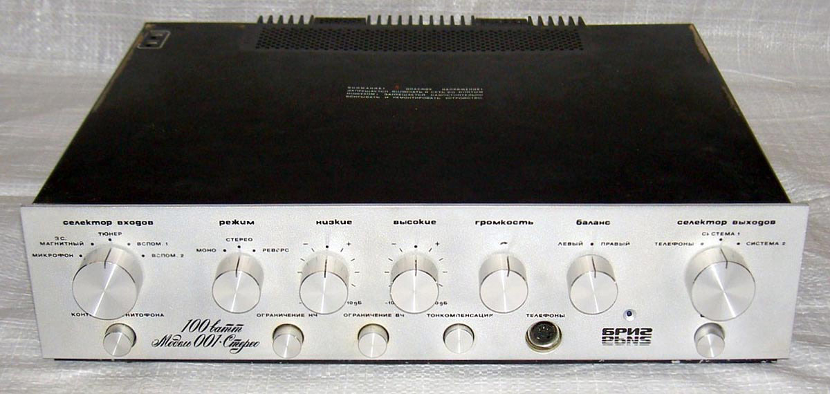 Один из первых и самых популярных транзисторных усилителей в СССР, его выпускали два завода - Ленинградское объединение «Океанприбор» и Кировский завод «Ладога». В нем были входы для ММ-головок звукоснимателя, а также линейные входы для подключения магнитофона, тюнера и других источников. Присутствовал встроенный темброблок для высоких и низких частот, предусмотрена система мягкого включения, а также защита от короткого замыкания на выходе. Номинальная выходная мощность на 8 Ом составляла 50 Ватт на канал, вес усилителя – 15 килограммов.