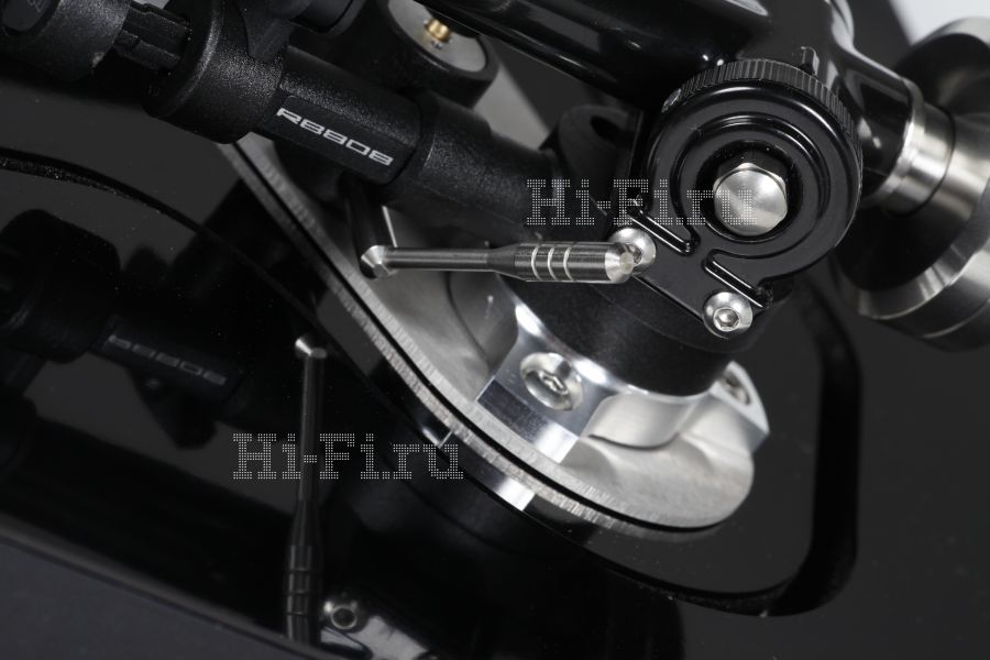 Тонарм, установленный на Rega RP8, — свежая модель RB808. Ее главные отличительные особенности — отобранные вручную подшипники, еще более строгие допуски при сборке и новый несъемный кабель с низкой погонной емкостью, тогда как все остальное полностью соответствует отработанным за многие годы схемам. Компенсация скатывающей силы обеспечивается двумя оппозитными магнитами. Пожалуй, это единственный параметр в вертушке, требующий от пользователя тонкой и аккуратной самостоятельной настройки. Хотя на ползунке есть две риски, соответствующие 1 и 2 г прижимной силы, мой опыт говорит о том, что разумнее призвать на помощь слух и постараться найти оптимальное положение эмпирическим путем. Как правило, чем меньше антискейтинга, тем лучше для звука. Прижимная же сила традиционно задается при помощи пружины, расположенной на оси вертикальных подшипников. Здесь тоже не надо безоговорочно верить градуировке, нанесенной на тонарм, и стоит воспользоваться специальными весами для получения гарантированного результата. Приехавший на тестирование проигрыватель был оснащен хорошо знакомым нам звукоснимателем Rega Exact — ММ-головкой с несъемной иглой, имеющей сложную многорадиусную заточку Vital. Она обеспечивает выходное напряжение примерно в 7 мВ, а это значит, что картридж будет легко сочетаться с любым фонокорректором. Рекомендованная прижимная сила — 1,75 г.