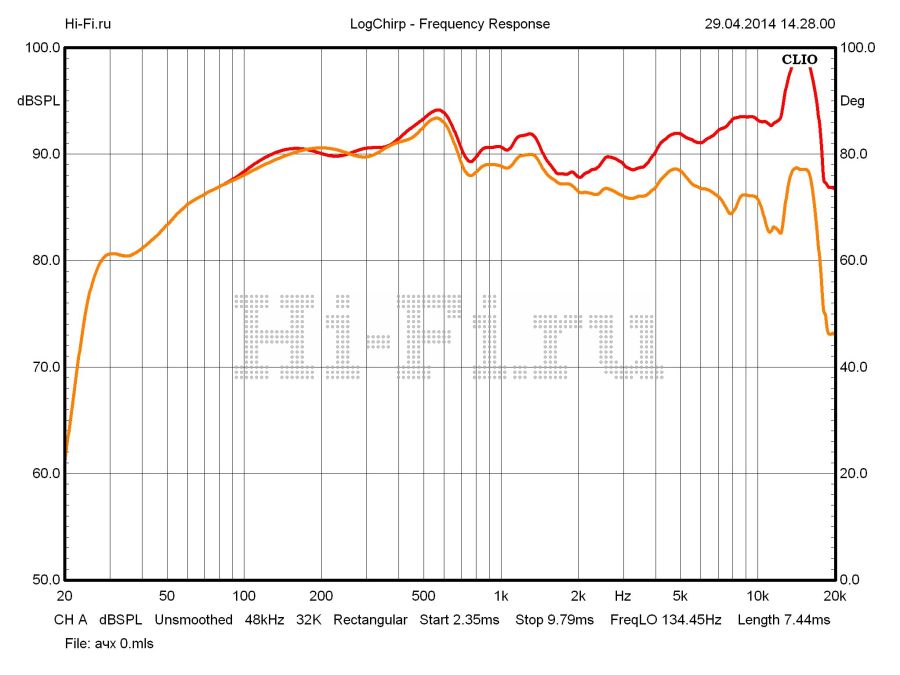 Разброс значений входного импеданса акустических систем Tannoy DC10A характеризуется как умеренный (рис. 1). Минимум в 5,4 Ом расположен на стабильном среднечастотном участке в районе 170 Гц. График АЧХ выявляет довольно значительные флуктуации во всем диапазоне частот (рис. 2). Неравномерность хода характеристики на СЧ достигает ±1,7 дБ. Ее спад в басовой области весьма интенсивный. Нижняя граничная частота определяется на отметке 28 Гц по уровню –10 дБ (80 Гц по уровню –3 дБ). Чувствительность модели на 1 м / 1 Вт составляет 90 дБ. Коэффициент нелинейных искажений при различных величинах звукового давления (82, 88, 94 дБ) в полосе рабочих частот показан на рис. 3. Повышенный уровень этого параметра в правой части графика не имеет особенного значения, учитывая неодинаковое распределение мощности сигнала в спектре музыкальной фонограммы.