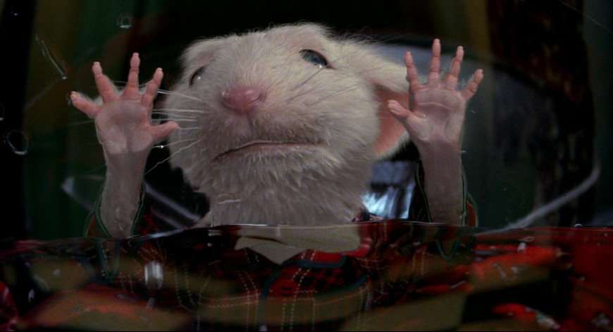 Ещё одно вполне привычное существо, которое в кино ведет себя не совсем так, как мы привыкли – мышонок из кинофильма “Стюарт Литтл”. Самая заурядная американская семья Литтлов решает при усыновлении принять в свой дом не человеческого ребенка, а… говорящую белую мышь. Стюарт – умный мышонок, но, как и все подростки, он умудряется постоянно попадать в неприятности. Когда же охоту на нового обитателя дома Литтлов открывает местный кот, дела хвостатого и вовсе идут плохо. Впрочем, менее милым мышонок не становится – даже наоборот.