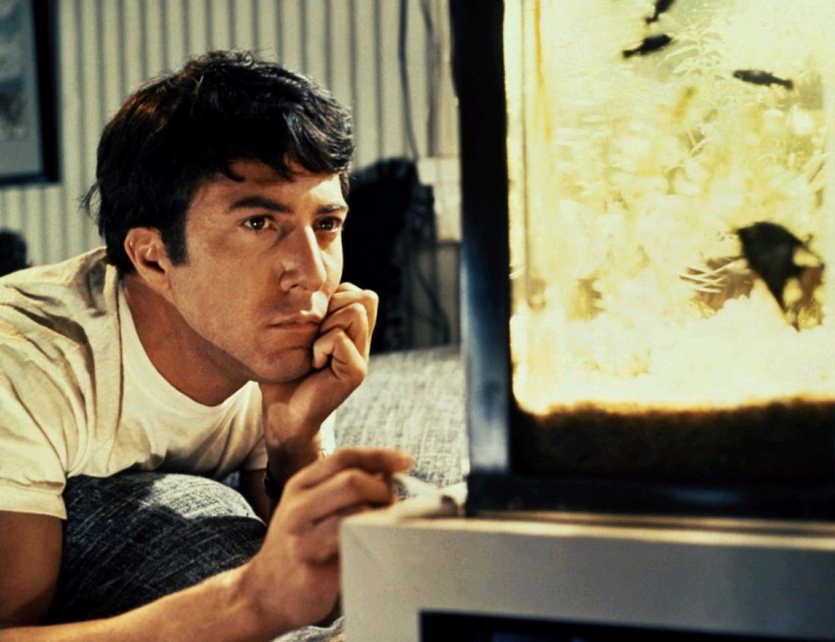 Рука Майка Николса тут сильна как никогда – из банального сюжета (Бенджамен Брэддок возвращается после окончания колледжа в отчий дом, на очередном торжестве знакомится со взрослой дамой миссис Робинсон, не устояв перед ее преследованием, вступает с ней в связь – а после влюбляется в ее дочь) он сделал и блестящий детектив, и сагу о взрослении. Конечно, автору сильно помог и Дастин Хоффман, который сыграл в «Выпускнике» свою лучшую роль.
