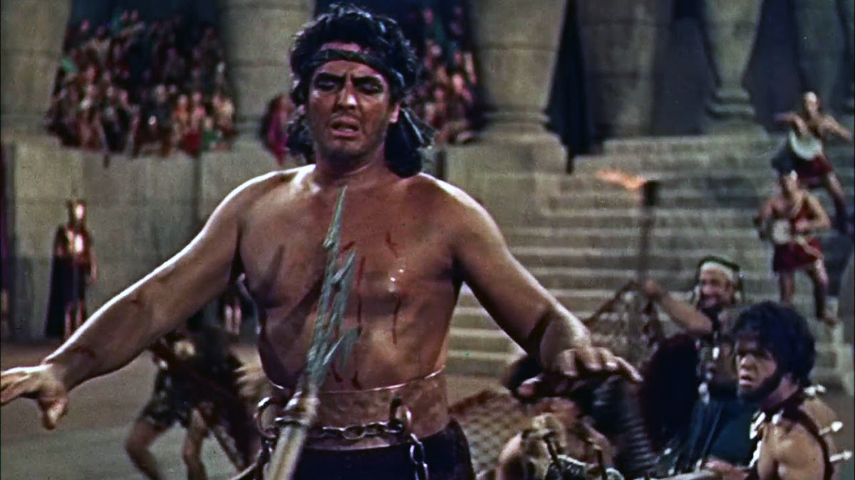 В 1939 году вышел фильм «Унесенные ветром». После его огромного успеха в Голливуде начали понимать, что в кино приходит цвет. А в 1940 году впервые в киноиндустрии использовали далекого предка современного зеленого экрана, который применяется почти во всех современных фильмах. Это был фильм «Багдадский вор», где актеров снимали уже не на черном фоне, а на синем. Правда, принцип выделения актеров от синего фона и их последующей интеграции со снятой отдельно средой не очень отличался от предыдущего. Техники также делали маски на контрастной черно-белой пленке, но теперь эта пленка была ортохроматическая — чувствительна к цветам. То есть, если перепечатать цветной негатив сквозь красный фильтр, то синий фон станет черным, потому что красный фильтр поглощает синий цвет. А если перепечатать цветной негатив сквозь синий фильтр, он пропустит синий фон, но не пропустит изображение актера. То есть в первом случае мы получим белый силуэт на черном фоне, а во втором — черный на белом. Это такие же маски, как в процессе Вильямса, но теперь больше процедур, чтобы сделать композитный кадр.