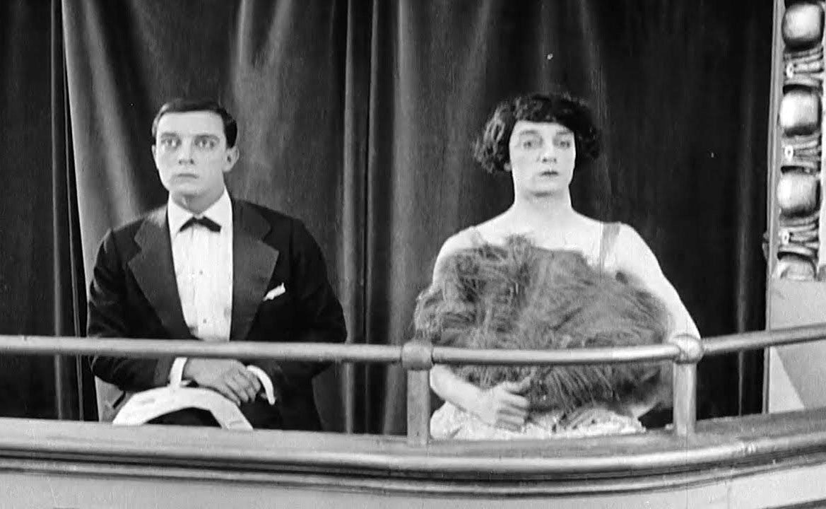 Основной прием композитной съемки — еще проще и надежнее. Объектив можно просто частично закрыть куском картона нужной формы и снять первую сцену. Затем закрыть вторую часть объектива и снять другую сцену. Этот прием называется маской или каше, и он использовался еще достаточно долго. Пленку можно экспонировать буквально множество раз, если это необходимо, потому масок может быть очень много. Особенно эффектными они были, когда требовалось клонировать актера в одной сцене. Например, вся первая часть «Театра» 1921 года была посвящена водевильному спектаклю, где все роли зрителей в театре, членов оркестра и актеров сыграл один Бастер Китон, иногда изображая одновременно в кадре до девяти человек. Недостатки этого метода тоже очевидны. Во-первых, объект или актер никак не может выйти за пределы «своей» части экрана и взаимодействовать с другим. Во-вторых, использование такого метода не позволяет совмещать задний и передний фон кадра, а только его части. В-третьих, надо экспонировать одну и ту же пленку, а с техникой столетней давности это было не очень, прямо говоря, безопасно. В 1920-х годах все это изменилось благодаря двум вещам: появлению метода блуждающей маски (travelling matte) и метода бипак, которые привели к созданию нового этапа кинопроизводства — постпродакшена. Постпродакшн — этап создания киноленты, который начинается после завершения съемок.