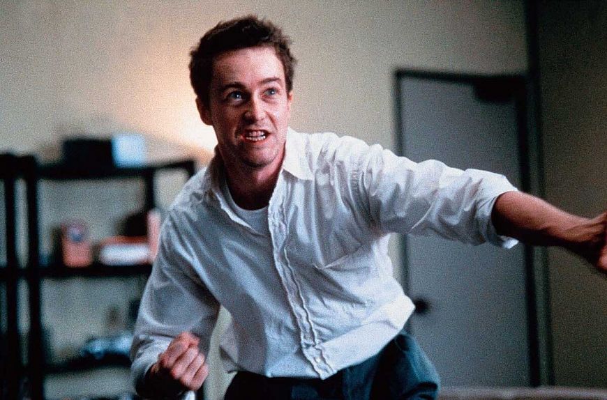 На самом деле, культовый триллер Дэвида Финчера “Бойцовский клуб” настолько плотно напичкан намеками на то, что Тайлер Дарден – фигура нереальная, что сейчас их сложно не заметить. В самом начале картины Рассказчик открыто говорит: “Когда у вас бессонница, ни что вокруг не является реальным”, затем его не смущает то, что солдаты проекта “Мэйхем” знакомы с ним, хотя он их видит впервые. Наконец, красочная картина в кабинете босса, где герой Эдварда Нортона избивает сам себя, отчетливо сообщает публике – никакой Тайлер здесь не нужен.