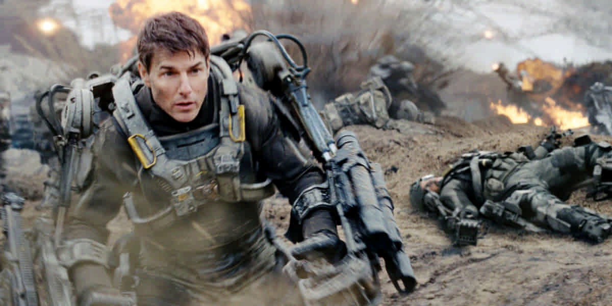 О чем: офицер, участвующий в войне с пришельцами, попадает во временную петлю и после каждой своей гибели возвращается на день в прошлое