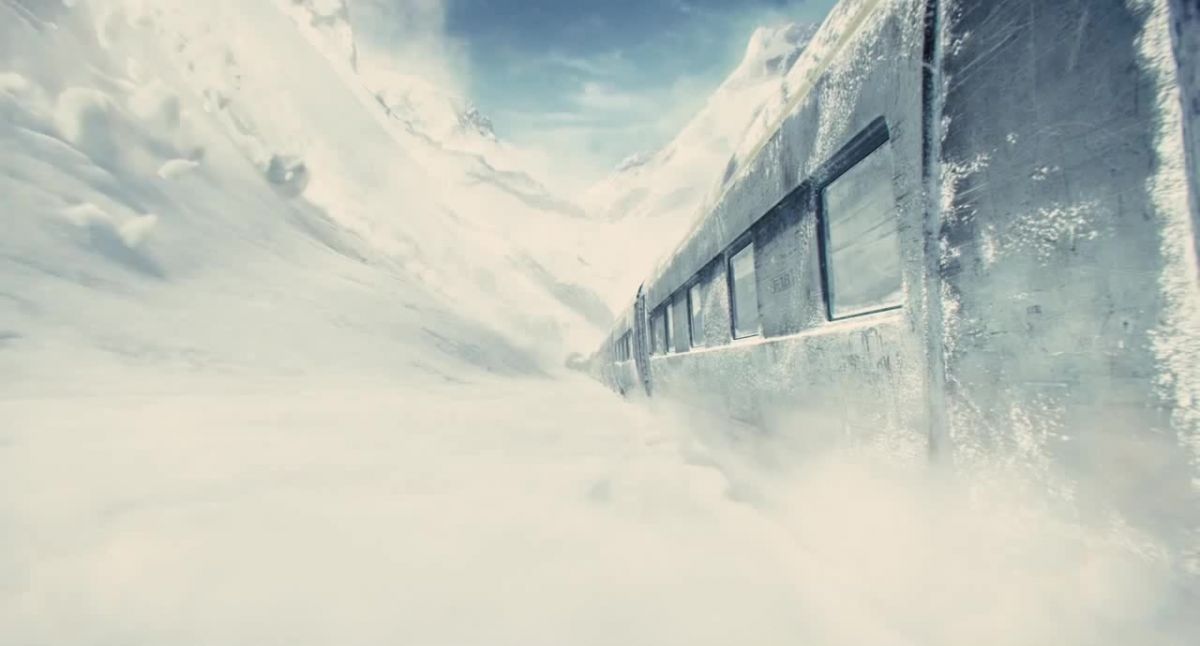 Пон Джун-хо снял удивительную постапокалиптическую аллюзию на современное общество. Единственные выжившие на Земле существуют в движущемся поезде, закольцованные в движении по Трансевразийской магистрали. В дальних вагонах царит мрак и ужас, первые же вагоны разрываются от роскоши. И, да, назревает революция.