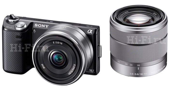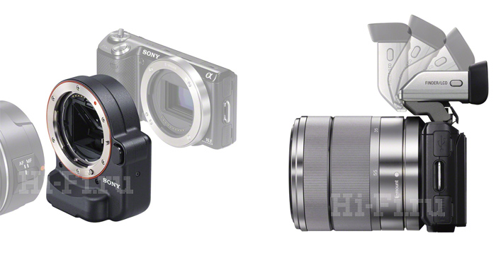 Справа на рисунке показан новый опциональный OLED-видеоискатель FDA-EV1S (розничная цена порядка 12 000 рублей) для NEX-5N.
